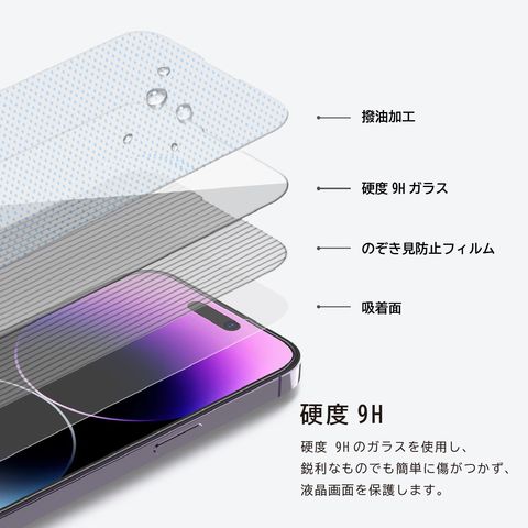iPhone14 Pro ガラスフィルム ( 2枚 入り ) 9H 強化ガラス 覗き見防止 指紋 気泡 傷 防止 フィルム iPhone14Pro アイフォン14プロ 対応 araree Sub Core Privacy