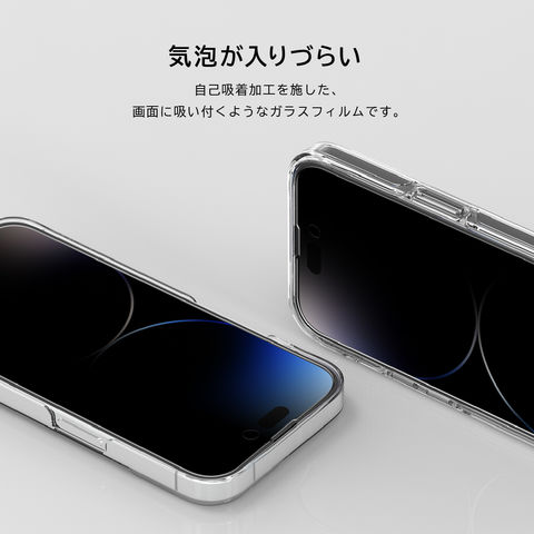 自己吸着加工を施した、画面に吸い付くようなガラスフィルムです。