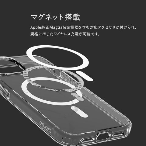 Apple純正MagSafe充電器を含む対応アクセサリが付けられ、規格に準じたワイヤレス充電が可能です。