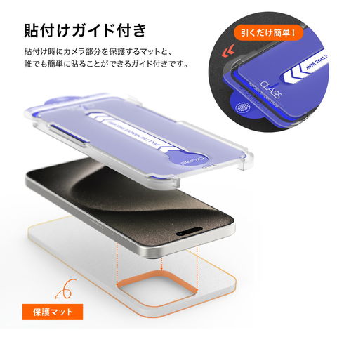 iPhone 15 Pro フィルム 簡単 貼付け ガイド 付 9H 強化ガラス 指紋 防止 ガラスフィルム iPhone15Pro Apple iPhone15 Pro アイフォン15 プロ 対応 araree Glass