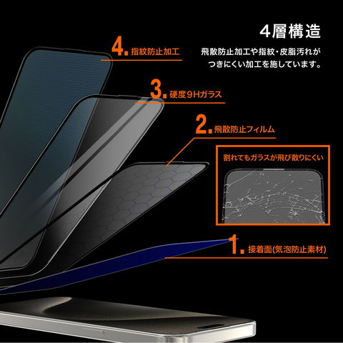 飛散防止加工や指紋・皮脂汚れがつきにくい加工を施しています。