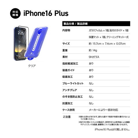 iPhone 16 Plus ガラスフィルム 9H 強化ガラス 気泡防止 フィルム 貼りやすい ガイド 付き 保護フィルム iPhone16Plus アイフォン 16 プラス 対応 araree Class