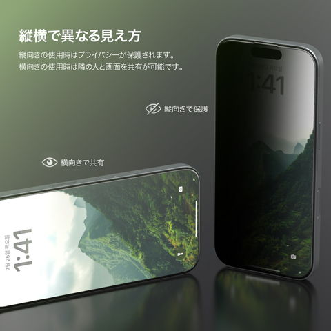 画面を左右から覗かれることを防ぐ、ブラインド仕様のフィルムです。周りの視線をカットします。