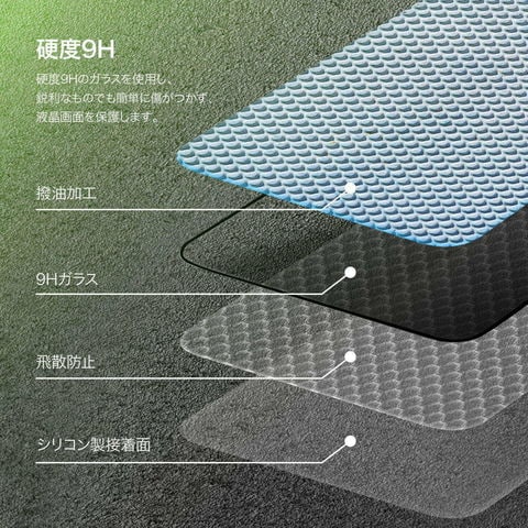 硬度9Hのガラスを使用し、鋭利なものでも簡単に傷がつかず、液晶画面を保護します。