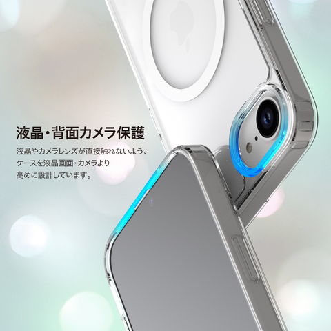 液晶やカメラレンズが直接触れないよう、ケースを液晶画面・カメラより高めに設計しています。