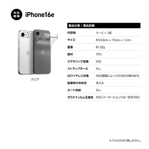 薄型、軽量を追求した、ソフトタイプのクリアケースです。