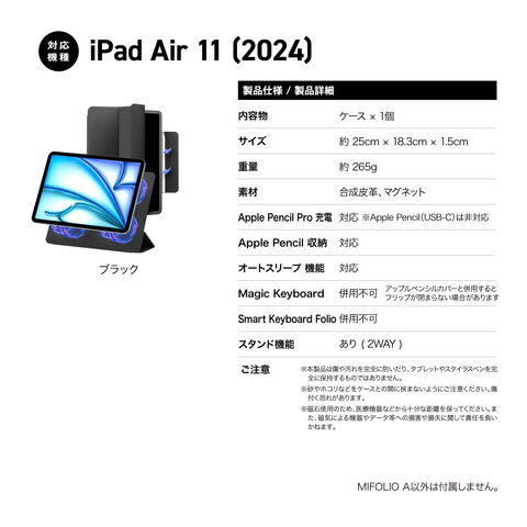 iPad Air 11インチ M2 ケース 手帳型 合成 皮 革 2WAY スタンド マグネット 入 保護 カバー ペン収納 iPadAir アイパッドエアー 11 2024 対応 araree MIFOLIO
