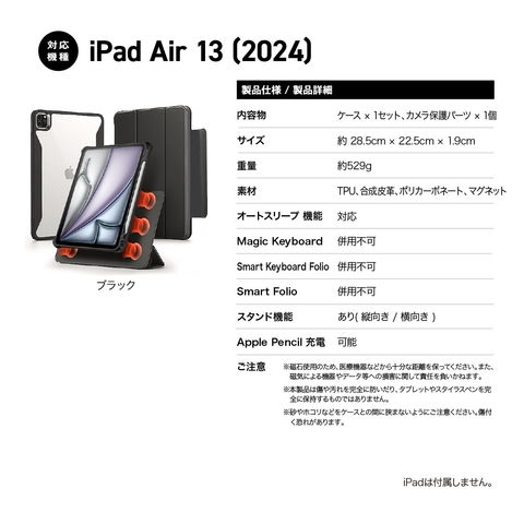 iPad Air 2024 M2 13 ケース スタンド カバー 強力 マグネット 式 分離式 角度調整 iPadスタンド アイパッドエアー iPadAir 13インチ 対応 araree HIFOLIOのレビュー