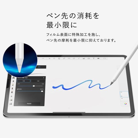 タッチペンと併用した際に、紙に書いているような感触を再現したフィルムです。