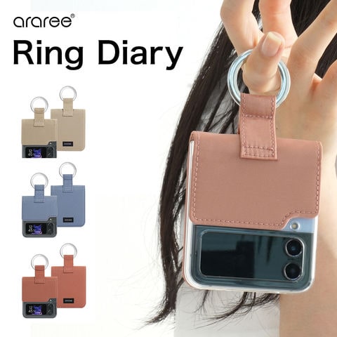 Galaxy Z Flip4 5G ケース 手帳型 カバー ストラップホール / スマホリング 付 スマホケース SCG17 / SC-54C ギャラクシーZフリップ4 araree Ring Diary