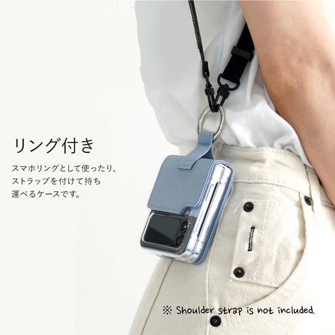 スマホリングとして使ったり、ストラップを付けて持ち運べるケースです。