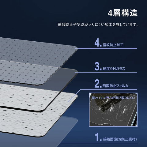 硬度9Hのガラスを使用し、鋭利なものでも簡単に傷がつかず、液晶画面を保護します。