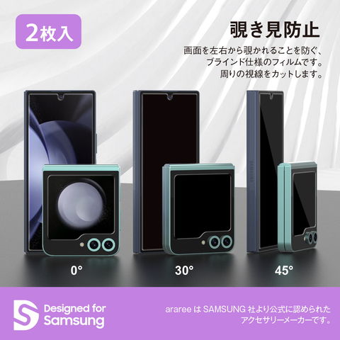 Galaxy Z Flip6 フィルム 2枚入 覗き見防止 9Hガラス 液晶 ガラスフィルム ガイド付き GalaxyZFlip6 ギャラクシー Z フリップ6 SC-54E 対応 araree Core Privacy