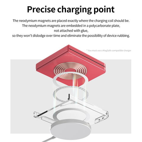 強力なマグネットを使用しています。ワイヤレス充電やMagSafe対応アクセサリを付けることが可能です。