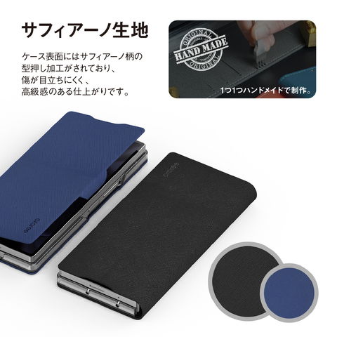ケース表面にはサフィアーノ柄の型押し加工がされており、傷が目立ちにくく、高級感のある仕上がりです。