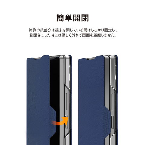 片側の爪部分は端末を閉じている間はしっかり固定し、見開きにした時には優しく外れて画面を邪魔しません。