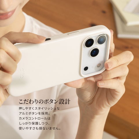 押しやすくスタイリッシュなアルミボタンを採用。カメラコントロールはしっかり保護しつつ、使いやすさも損ないません。