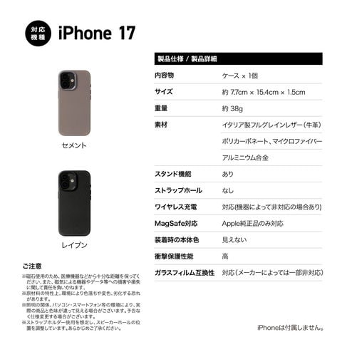 イタリア製フルグレインレザー(牛革)、ポリカーボネート、マイクロファイバー、アルミニウム合金、マグネット