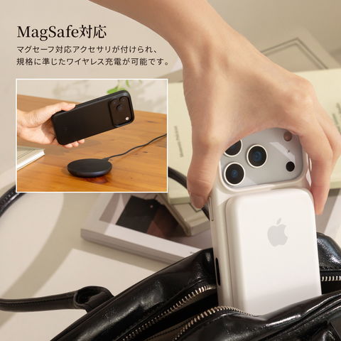 マグセーフ対応アクセサリが付けられ、規格に準じたワイヤレス充電が可能です。