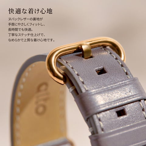 ヌバックレザーの裏地が手首にやさしくフィットし、長時間でも快適。丁寧なステッチ仕上げで、なめらかで上質な着け心地です。
