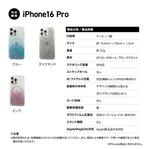 iPhone 16 Pro ケース クリア オシャレ キラキラ 可愛い MagSafe 対応 耐衝撃 スマホケース ラメ かわいい スマホカバー iPhone16Pro 対応 BRYTEN Starburst