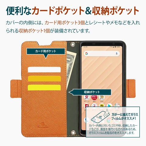 フリップ内側には、収納ポケットを設けており、ICカードやクレジットカード、紙幣等を収納できます。