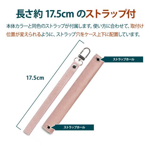 本体カラーと同色のストラップがついており、取り外しも出来るようになっています。