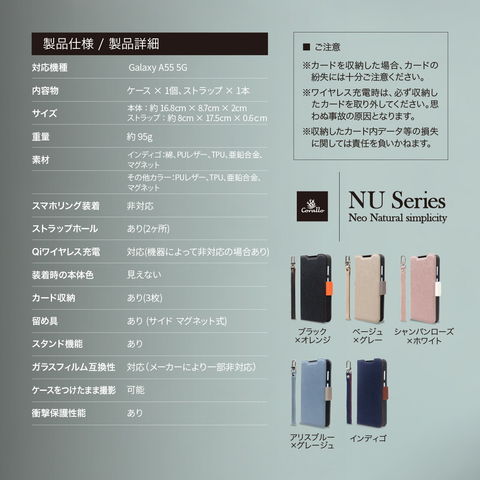 Galaxy A55 5G ケース 手帳型 カード 収納 ストラップ スタンド 機能 付 PU レザー デニム スマホケース GalaxyA55 ギャラクシーA55 対応 Corallo NU