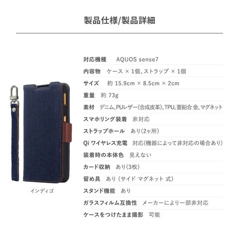 AQUOS sense7 ケース 手帳型 カバー カード収納 ストラップ 付 スマホケース 手帳型ケース [ AQUOSsense7 アクオスセンス7 SHG10 SH-53C ] Corallo NU JEANS