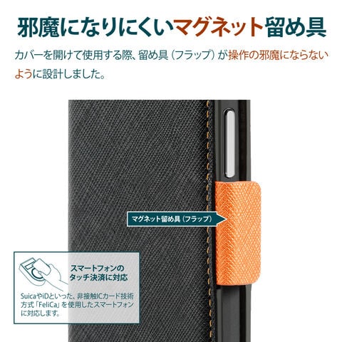 マグネット式留め具を開けた際に、留め具が操作に干渉しづらいよう、サイドに配置しております。
