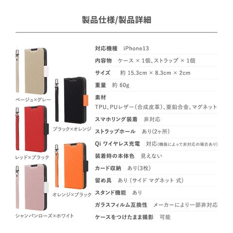 iPhone13 ケース 手帳型 ストラップ ストラップホール 付 マグネット 手帳 レザー スマホケース カバー [ iPhone 13 iPhone13ケース アイフォン13 ] Corallo NU