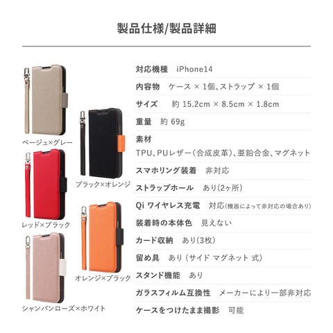 iPhone14 ケース 手帳型 カバー カード収納 ストラップ 付 手帳 スマホケース マグネット ベルト 薄い 手帳型ケース [ iPhone 14 アイフォン14 ] Corallo NU