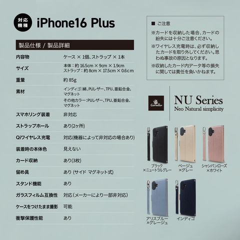 iPhone 16 Plus ケース 手帳型 カード 収納 スマホ ストラップ スタンド 機能 付 スマホケース PU レザー デニム 手帳型ケース iPhone16Plus 対応 Corallo NU