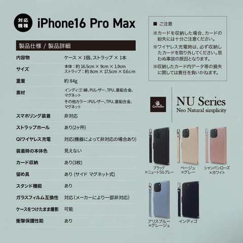 iPhone 16 Pro Max ケース 手帳型 カード 収納 スマホ ストラップ スタンド 機能 スマホケース PU レザー デニム 手帳型ケース iPhone16ProMax 対応 Corallo NU