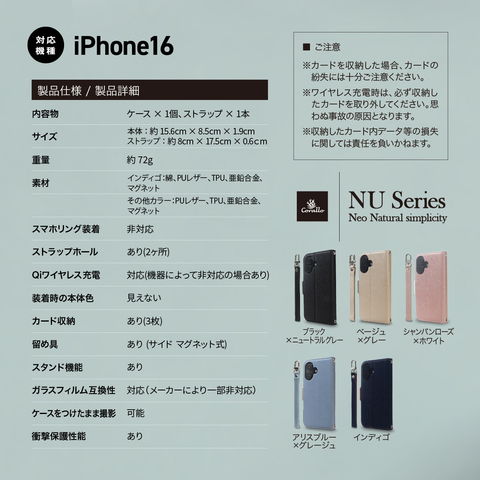 iPhone 16 ケース 手帳型 カード 収納 スマホ ストラップ スタンド 機能 スマホケース PU レザー デニム 手帳型ケース iPhone16 アイフォン16 対応 Corallo NU