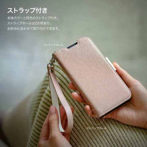 本体カラーと同色のストラップ付きです。ストラップホールは2か所あり、お好みに合わせて取り付け可能です。