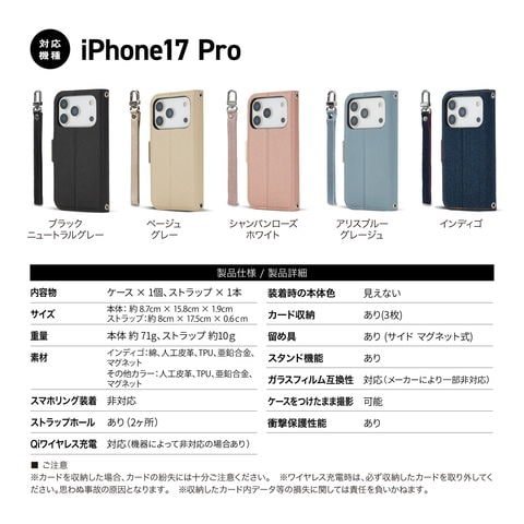 iPhone 17 Pro ケース 手帳型 カード 収納 スタンド ストラップ 紐 スマホケース 人工 皮 革 携帯ケース カバー iPhone17Pro アイフォン17Pro 対応 Corallo NU