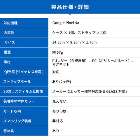 PUレザー(合成皮革)、PC(ポリカーボネート)、マグネットなど