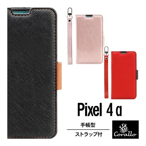 Pixel4a ケース 手帳型 ストラップ 付き 薄型 手帳 レザー カバー マグネット 留め具 ストラップホール カード 収納 付 Google Pixel 4a ピクセル4a Corallo NU