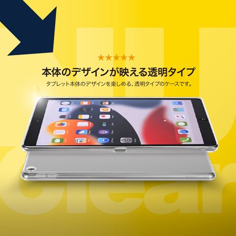 タブレット本体のデザインを楽しめる、透明タイプのケースです。