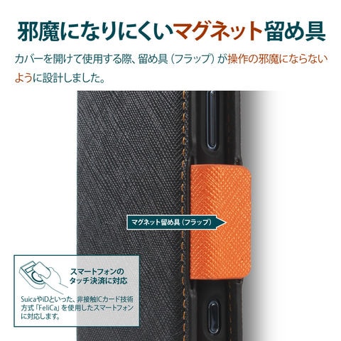 マグネット式留め具を開けた際に、留め具が操作に干渉しづらいよう、サイドに配置しております。