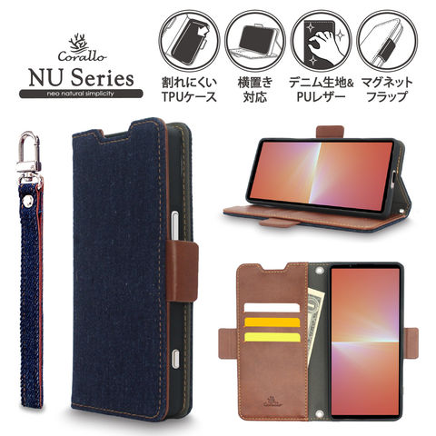 Xperia 5 V ケース 手帳型 カード 収納 ストラップ スタンド 機能 付 デニム スマホケース AQUOS sense 8 アクオス センス8 対応 Corallo NU JEANS