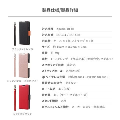 Xperia 10 III ケース 手帳型 ストラップ 付 マグネット 手帳 レザー カバー [ エクスペリア 10 3 エクスペリア10 III Xperia10III SOG04 SO-52B ] Corallo NU