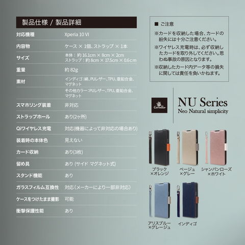 Xperia 10 VI ケース 手帳型 カード収納 ストラップ スタンド 付 レザー デニム スマホケース SONY Xperia 10VI ソニー エクスペリア 10 SO-52E 対応 Corallo NU