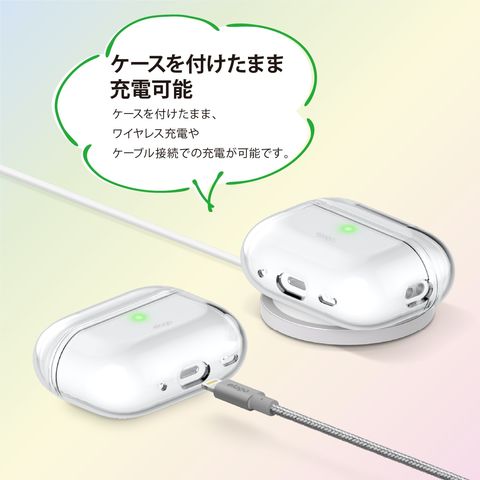 ケースを付けたまま、ワイヤレス充電やケーブル接続での充電が可能です。