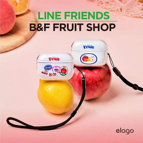 AirPods Pro2 ケース ラインフレンズ 公式ライセンス ストラップ 付 エアポッツプロ2 MQD83J/A MTJV3J/A 対応 elago LINE FRIENDS B&F FRUIT SHOP