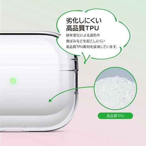 経年変化による退色や黄ばみなどを起こしにくい高品質TPU素材を採用しています。