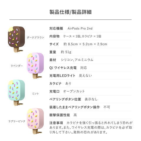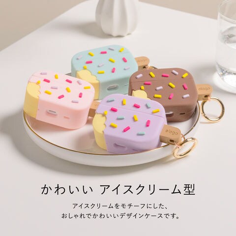 AirPods Pro2 ケース かわいい 韓国 風 アイスクリーム 耐衝撃 カバー カラビナ 付 Apple エアポッツプロ2 第2世代 MQD83J/A MTJV3J/A 対応 elago ICE CREAMのレビュー