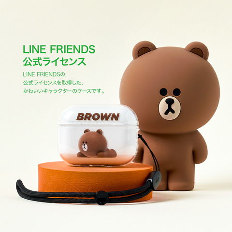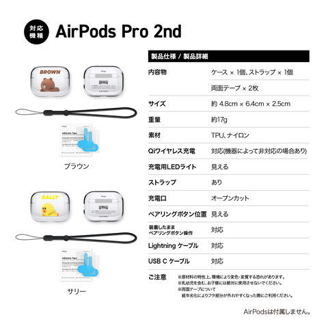 AirPods Pro 2 ケース ラインフレンズ 公式ライセンス ストラップ 付 耐衝撃 クリア カバー AirPodsPro2 第2世代 対応 elago LINE FRIENDS Brown & Sally