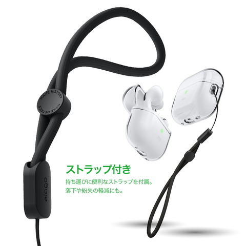 持ち運びに便利なストラップを付属。落下や紛失の軽減にも。